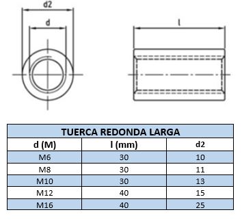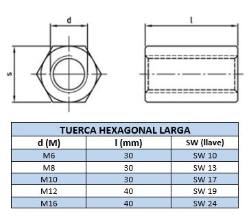 Tuercas largas de conexión: hexagonales / cilíndricas (A2/ AISI 304)